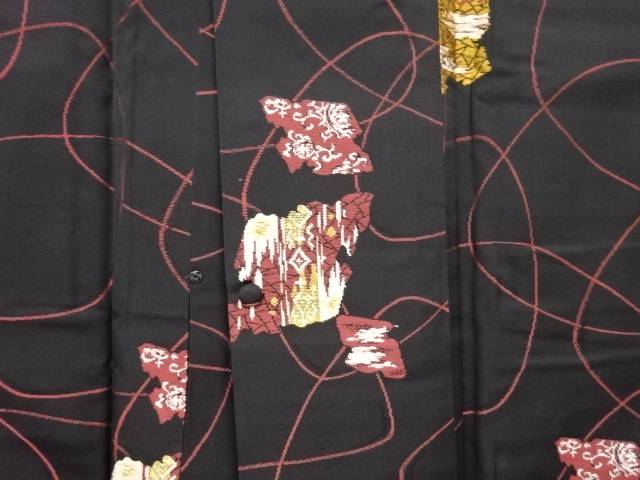 <羽織サイズ>(単位:cm) 着丈104着丈(出し) 裄63裄(出し) 袖丈49袖丈(出し) 後幅29前幅34 状態 非常によい 素材 正絹 色目 黒 【商品説明】返し…50センチ右竪衿にホック跡があります。