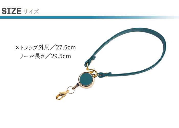 上品な艶のある落ち着いた色合いを持った天然牛革を使用したベーシックなデザインのリール付きストラップ パスケースやキーケースに取り付けて安全に持ち歩くために必須のリール付きストラップ サイズ ストラップ/27.5cm リール/29.5cm 重さ 約17g 素材 牛革 カラー ターコイズブルー、レッド、イエロー、チョコ、グリーン、エメラルドグリーン、ブラック、ネイビー 仕様 リール×1、ストラップ×1 配送 本商品はネコポス配送となります。